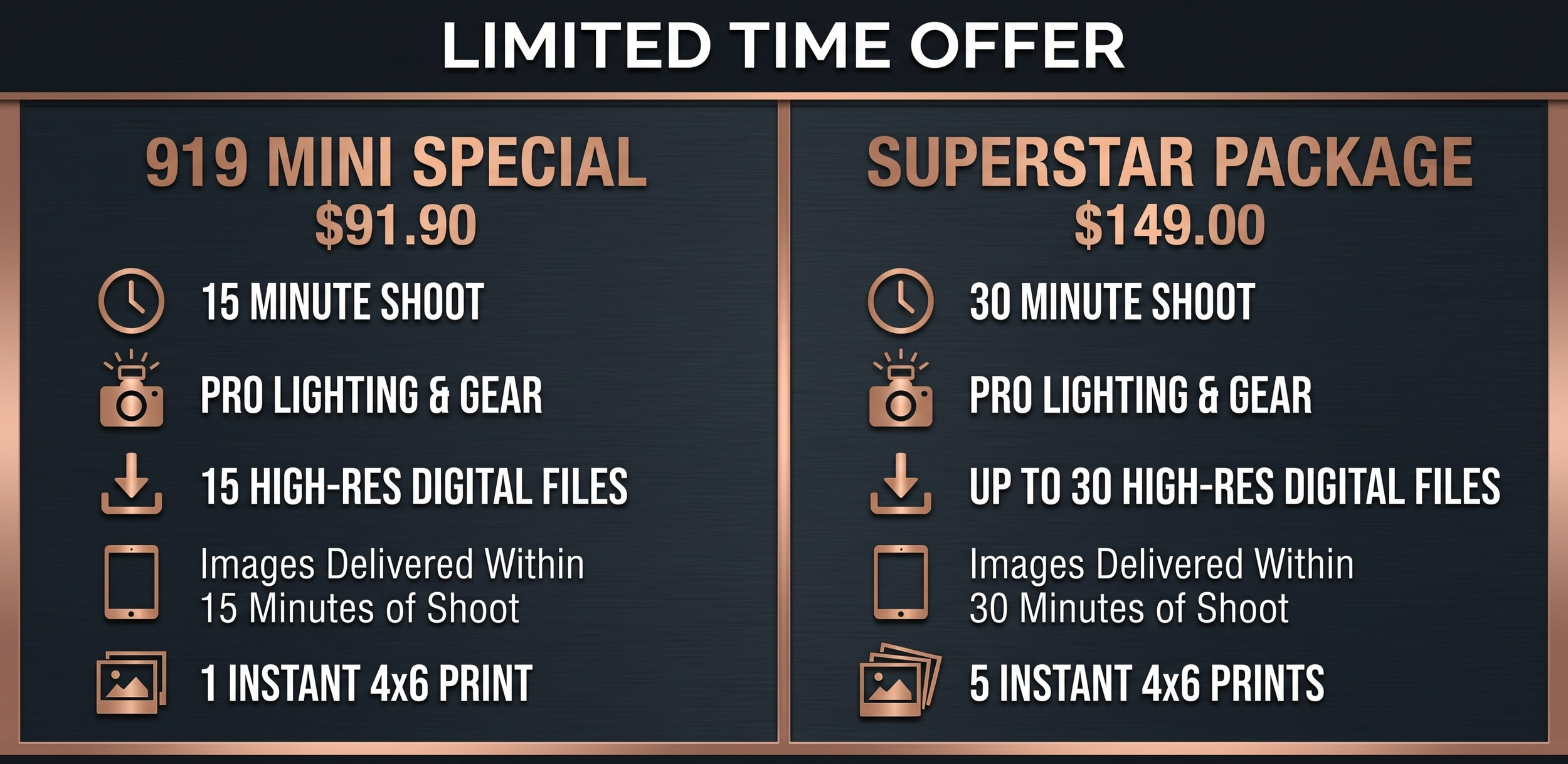 NOTE: A $25 commitment fee is required to secure your time slot. This fee is applied to your total balance, which can be paid on-site via Card, Apple Pay, Cash App, or Cash after your photos are delivered.